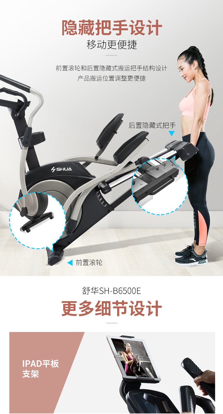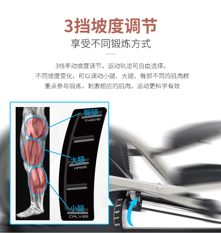 椭圆机是一种主动运动方式,能预防、降低、缓解颈椎病、肩周炎等疼痛。而且,在使用室内健身器材-椭圆机时,因为膝盖不是着力点,所以对膝关节的冲击力也很小,很大程度降低了给膝盖造成损伤的可能性,安全性大大提升,更为重要的是,室内健身器材-椭圆机运动强度不大,适合体重过重的肥胖人群使用。它既适用于大众人群进行锻炼,更适合不同人群,还适合康复训练、产后人群恢复训练等。