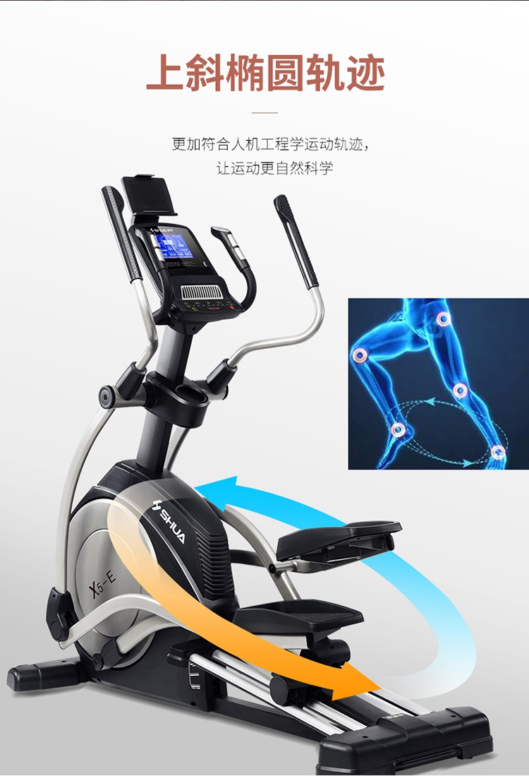 椭圆机是一种主动运动方式,能预防、降低、缓解颈椎病、肩周炎等疼痛。而且,在使用室内健身器材-椭圆机时,因为膝盖不是着力点,所以对膝关节的冲击力也很小,很大程度降低了给膝盖造成损伤的可能性,安全性大大提升,更为重要的是,室内健身器材-椭圆机运动强度不大,适合体重过重的肥胖人群使用。它既适用于大众人群进行锻炼,更适合不同人群,还适合康复训练、产后人群恢复训练等。