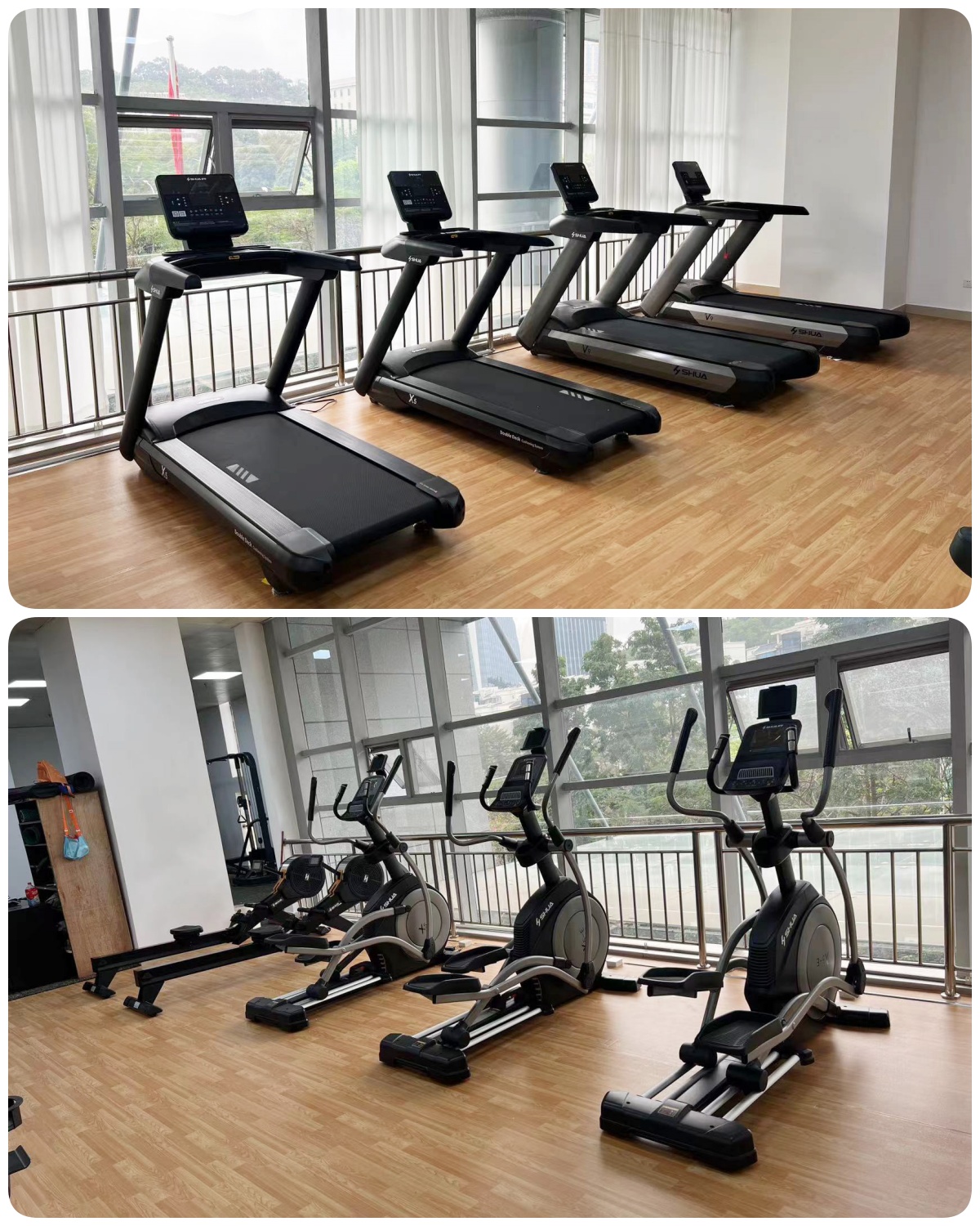 有氧区域主要配置了星空xkX5跑步机、X5-E椭圆机、划船器SH-R8100、动感单车。有氧器材可以改善心肺功能、促进血液循环、提高新陈代谢、提升身体素质、提供了多样化的锻炼选择、能有效缓解工作压力和焦虑情绪,从而提高注意力和专注力,使员工在工作中更加冷静、高效。